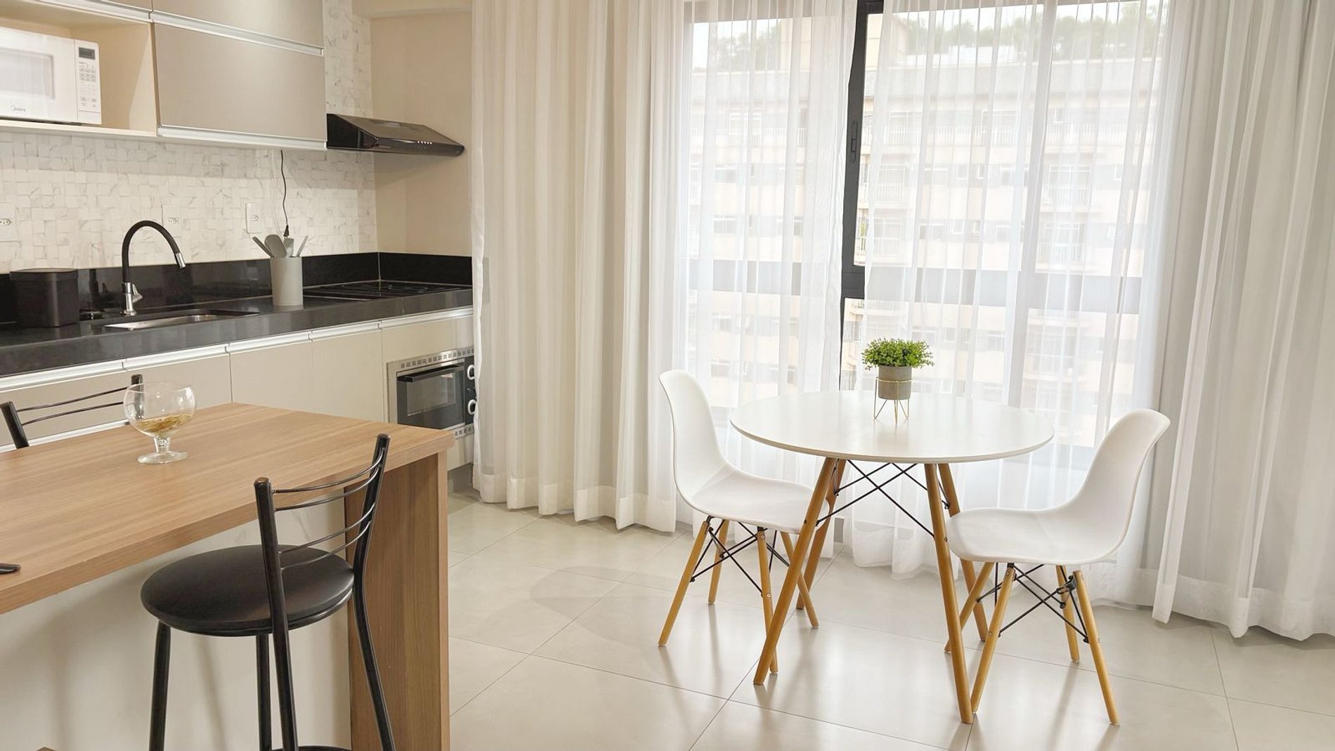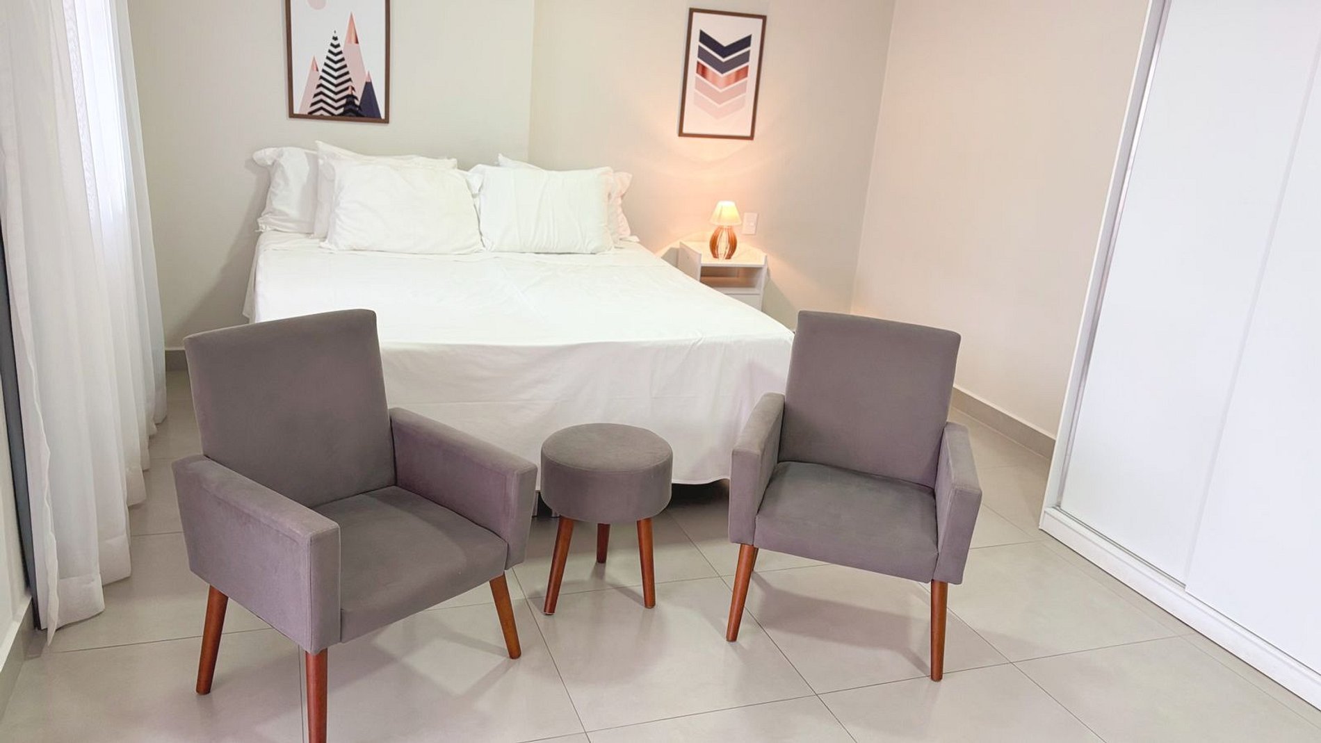 O flat foi preparado para oferecer uma estadia confortável e funcional. O espaço conta com ambiente bem distribuído, cama confortável, ar-condicionado, TV, internet Wi-Fi e cozinha equipada para pequenas refeições, que permitem mais praticidade durante a estadia. A acomodação é ideal para quem busca conforto, organização e um ambiente acolhedor para descansar após um dia de passeios.