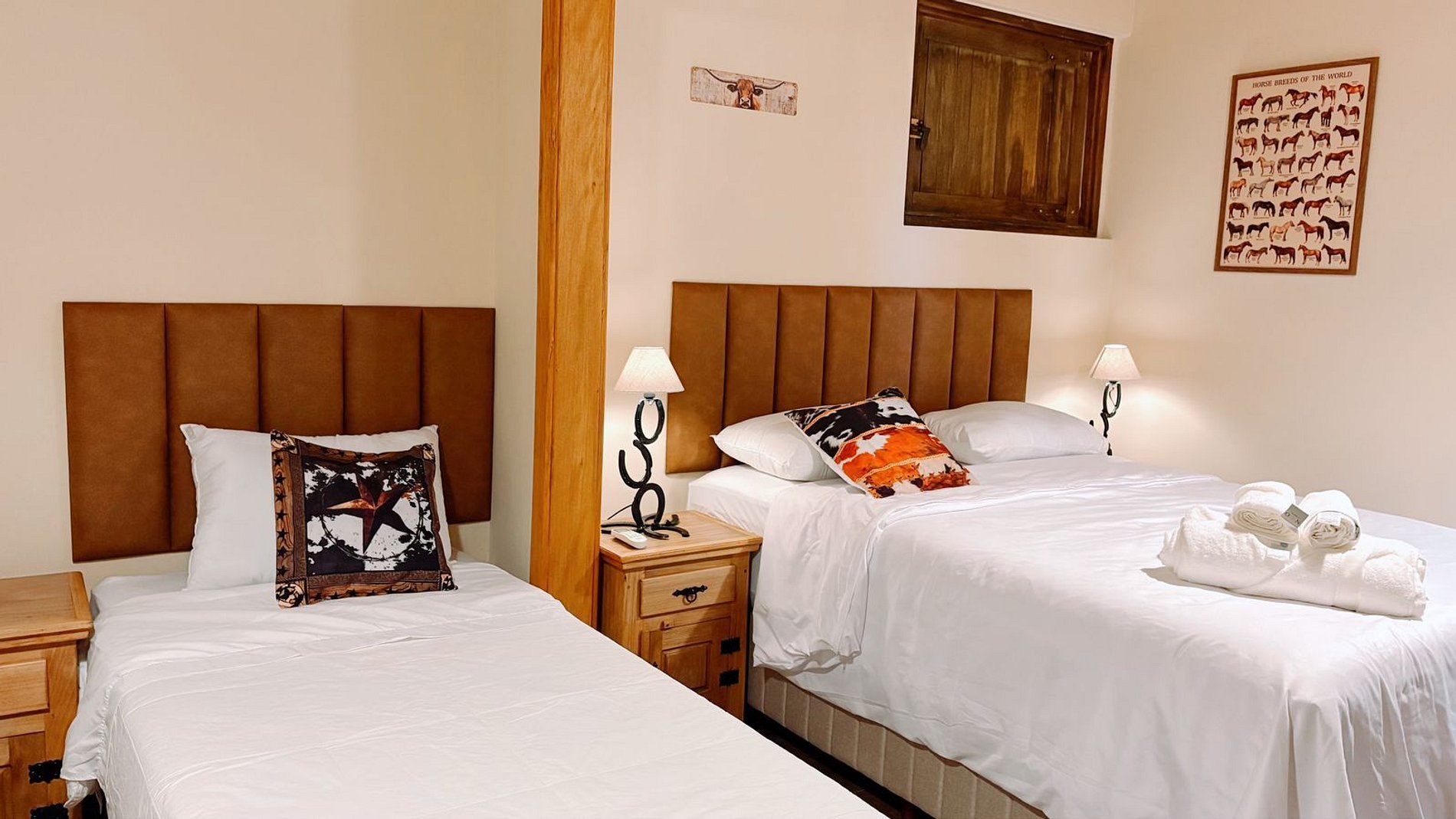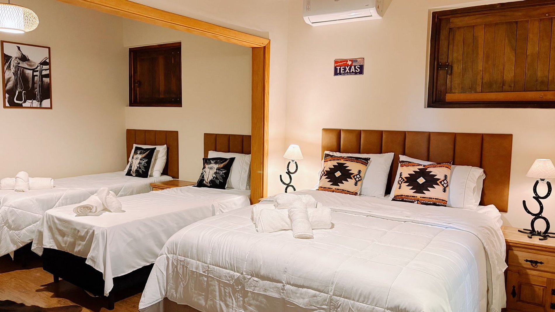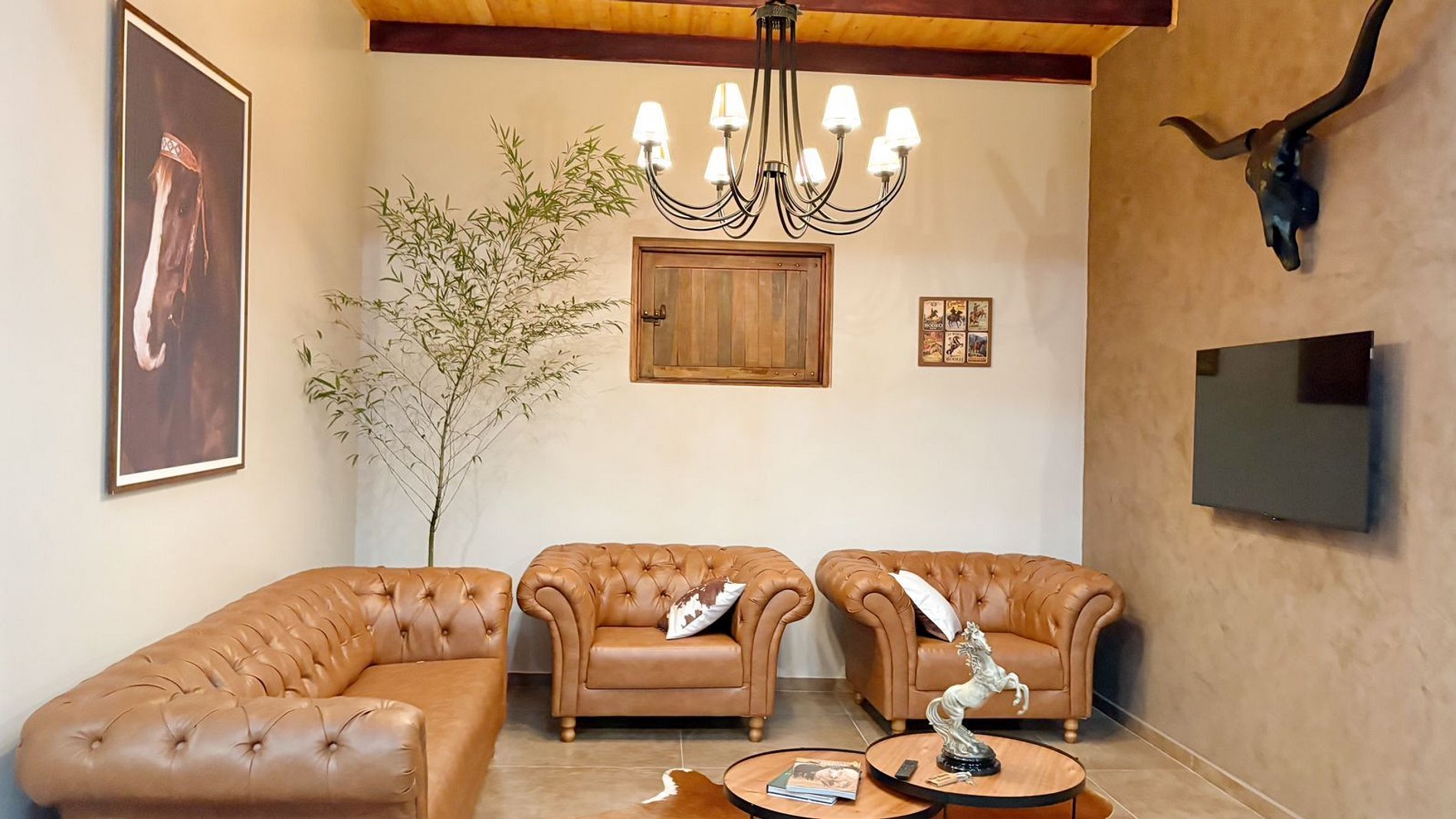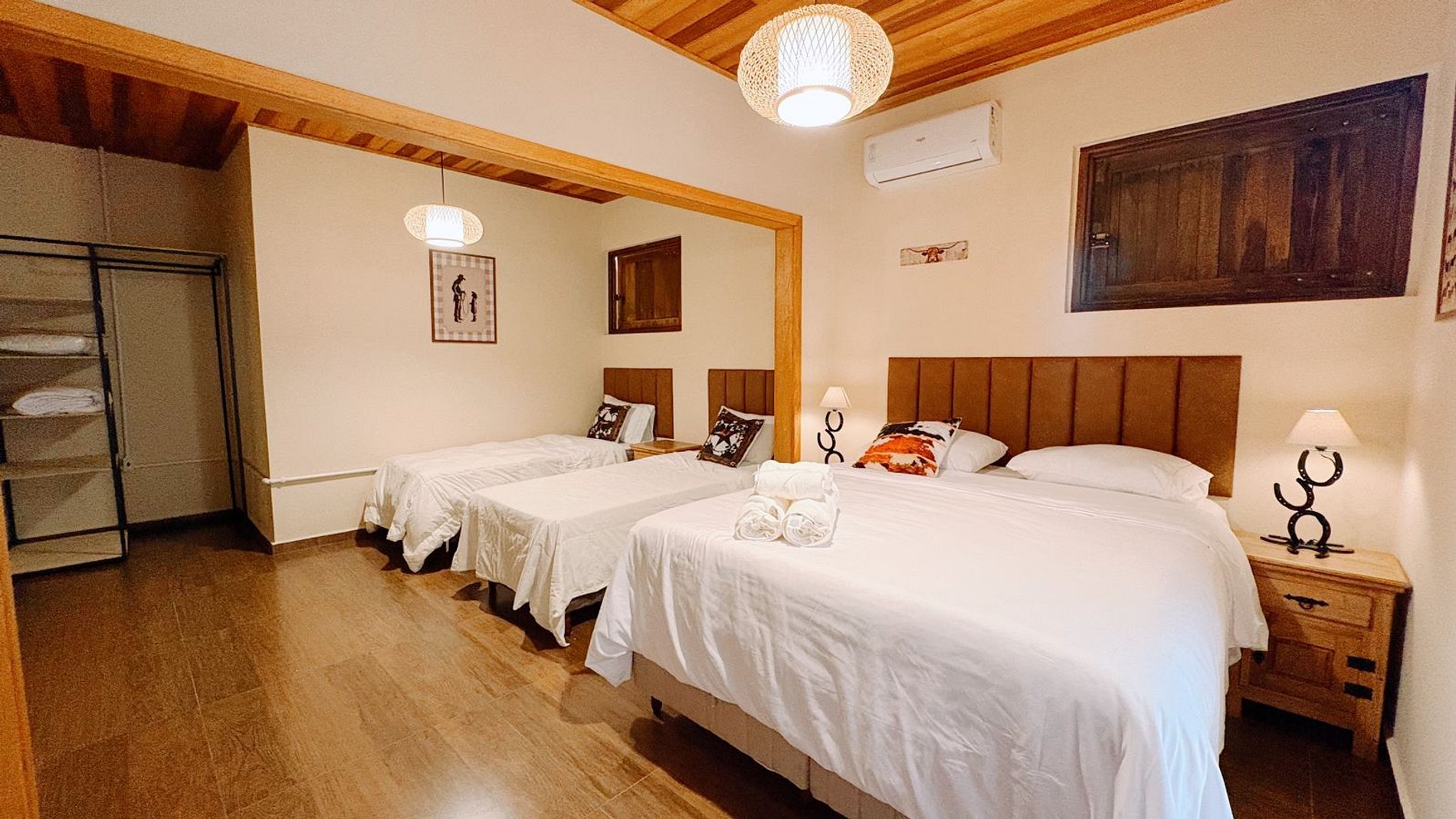 Aqui, as suítes estão integradas a um celeiro estilo americano, proporcionando uma vivência rara: ao abrir a porta pela manhã, você estará frente a frente com os cavalos em suas baias. Um cenário real, vivo e surpreendente, que transforma qualquer estadia em memória. As suítes foram projetadas para oferecer uma experiência única, unindo o charme rústico do estilo country ao conforto de uma hospedagem de alto padrão.